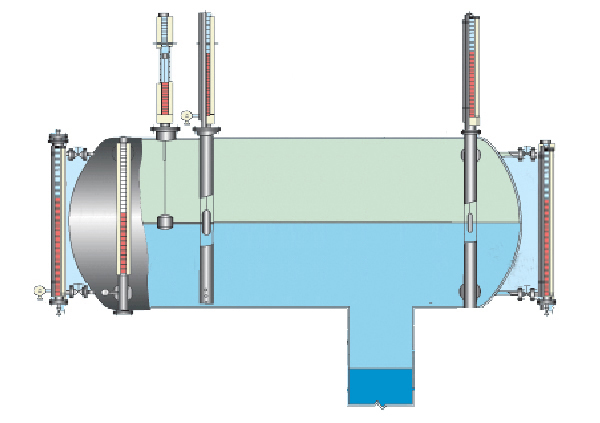 3、.液位計進入運行前,應先打開上法蘭氣相閥,然后緩慢打開下法蘭液相閥,使介質緩慢的流入筒體讓翻柱(板)逐一跟蹤指示,并用調節螺釘調整好零液位。